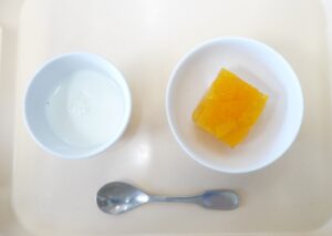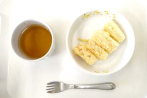 離乳食後期のおやつ:りんごケーキ、麦茶