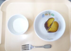 おやつ:焼き芋、牛乳