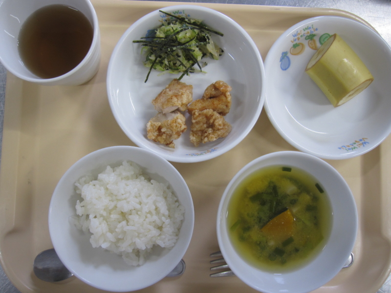 ごはん、から揚げ、もやしサラダ、みそ汁(にら、なめこ、玉ねぎ)、麦茶 少し暑さも和らぎましたが、まだまだ暑い!ということで、みんなが大好きなから揚げをおいしく食べて、元気いっぱいになりますように。食欲が増すこの時期に、お … “” の続きを読む