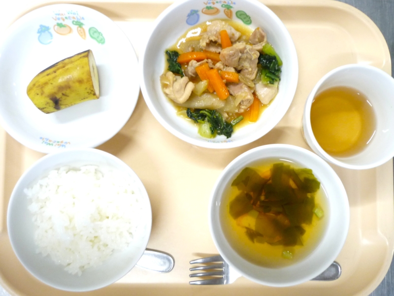 昼食:ごはん、鶏肉のケチャップ煮、ポテトスープ、バナナ、麦茶 鶏肉のケチャップ煮は子どもたちが大好きなケチャップ味でたっぷりの野菜と鶏肉を煮込んでいます。寒さと乾燥で風邪に負けないようにたんぱく質とビタミンをたっぷり … “鶏肉のケチャップ煮” の続きを読む