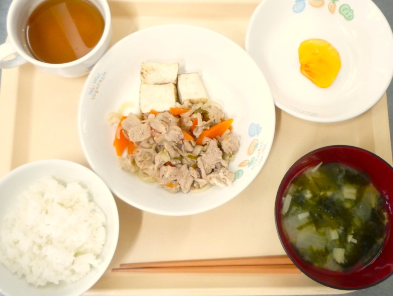 昼食:ごはん、厚揚げのカレー炒め、わかめスープ、柿(3・4・5歳)、バナナ(1・2歳)、麦茶 厚揚げは木綿豆腐を油で揚げているので、栄養成分が凝縮して、腹持ちがよく、さまざまな味付けで食べられます。今日は子どもたちに人気 … “厚揚げのカレー炒め” の続きを読む
