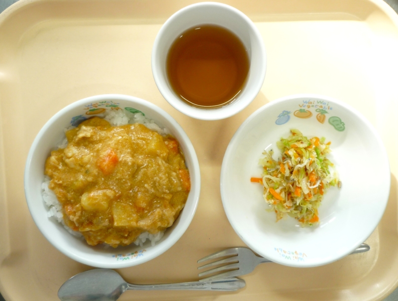 昼食:カレー、ごはん、ツナとキャベツのサラダ、麦茶 上新粉とカレー粉、ケチャップ、ソースで仕上げた優しいルーで、野菜の旨味を引き立てる味になっています。子どもが大好きなカレーは、毎月旬のお野菜をたくさん入れ … “カレー” の続きを読む