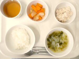 離乳食(後期)昼食:軟飯、かじきの味噌煮、おひたし、みそ汁