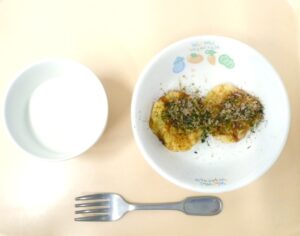 離乳食午後おやつ(後期食):じゃがいもおやき、麦茶