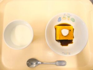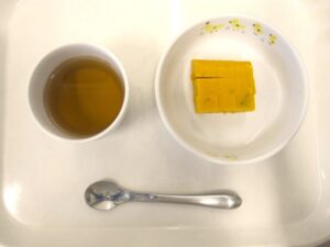 離乳食(後期)午後おやつ:かぼちゃプリン、麦茶
