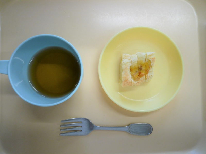 離乳食(後期)午後おやつ:麦茶、バナナパンケーキ