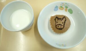 今日はお正月遊びの会にちなみ、お正月料理を提供。お雑煮風では優しいゆずや三つ葉の香りとかつおだしが食欲をそそりました。松風焼きはごまをたっぷり飾り、裏表のない正直な素直な気持ちですごせますように願いを込めています。