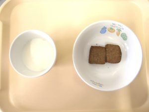 午後おやつ:牛乳、きな粉クッキー