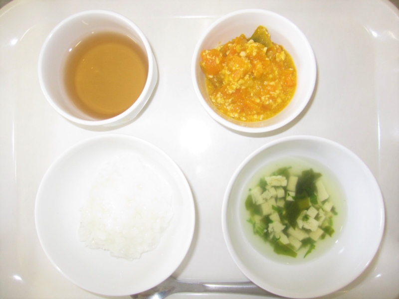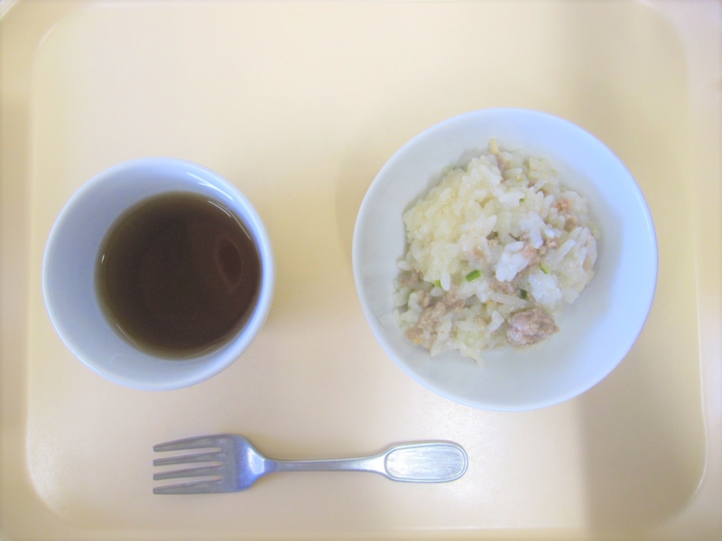 離乳食(後期)午後おやつ:麦茶、中華粥