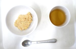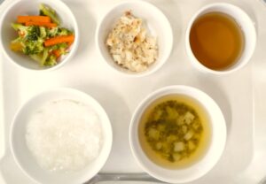 離乳食(後期)昼食:おかゆ、かれいの南部焼き、おかか和え、すまし汁