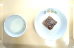 離乳食(後期)午後おやつ:きなこパン、麦茶