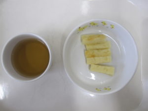 離乳食(後期)午後おやつ:麦茶、ポテトパンケーキ