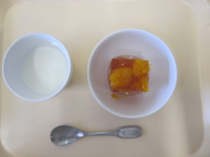 午後おやつ:牛乳、おひさまゼリー