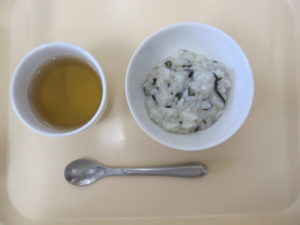 離乳食(後期)午後おやつ:麦茶、ごまのり粥