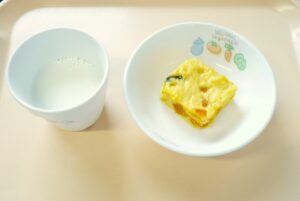 午後おやつ:かぼちゃ蒸しパン、牛乳