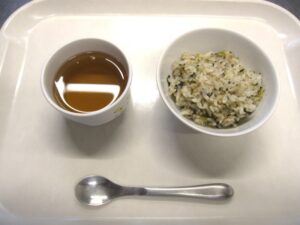 離乳食(後期)午後おやつ:青菜ご飯、麦茶