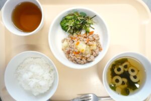 じゃが芋にはビタミンCが多く、お肌やのどが乾燥して風邪をひきやすいこの時期にぜひ取り入れたい食材です。甘辛い肉そぼろと一緒に煮こみ、子どもたちに大人気でした。