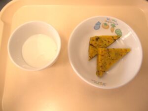午後おやつ:かぼちゃパンケーキ、牛乳