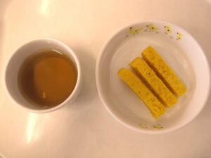 離乳食(後期)午後おやつ:かぼちゃパンケーキ、麦茶