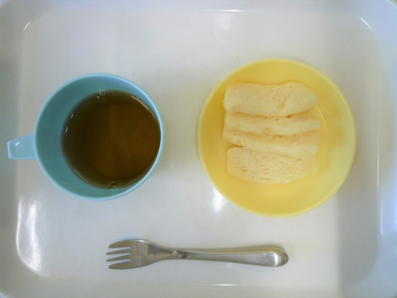 離乳食(後期)午後おやつ:麦茶、蒸しパン