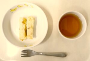 離乳食(後期)午後おやつ:バナナパンケーキ、麦茶