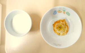午後おやつ:バナナマフィン、牛乳