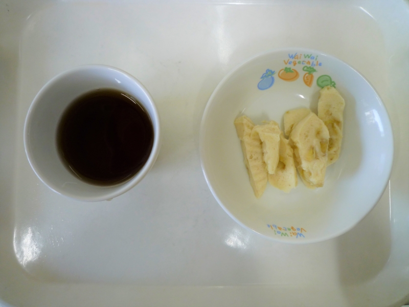 離乳食(後期)午後おやつ:麦茶、バナナ蒸しパン