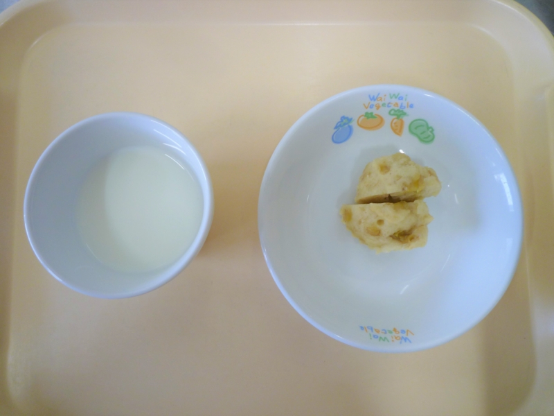午後おやつ:牛乳、バナナ蒸しパン