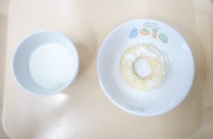 おやつ:焼きドーナツ、牛乳