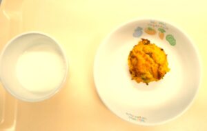 離乳食(後期)午後おやつ:かぼちゃパンケーキ、麦茶