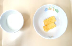 離乳食(後期)午後おやつ:米粉パンケーキ、麦茶