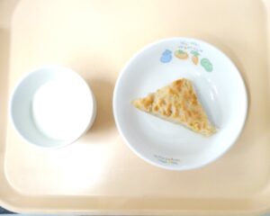 おやつ:バナナケーキ、牛乳