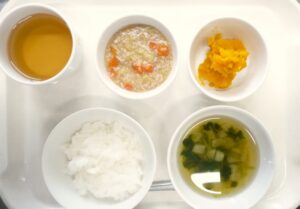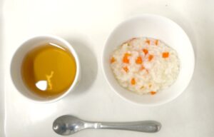 離乳食(後期)午後おやつ:人参ご飯(または粥)、麦茶