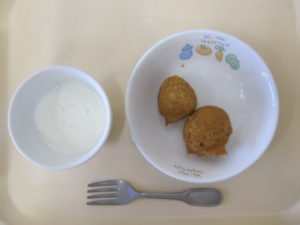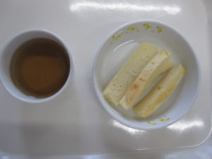離乳食(後期)午後おやつ:麦茶、豆乳パンケーキ