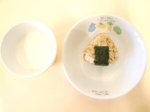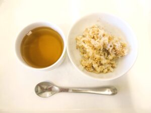 離乳食(後期)午後おやつ:おかかごはん、麦茶