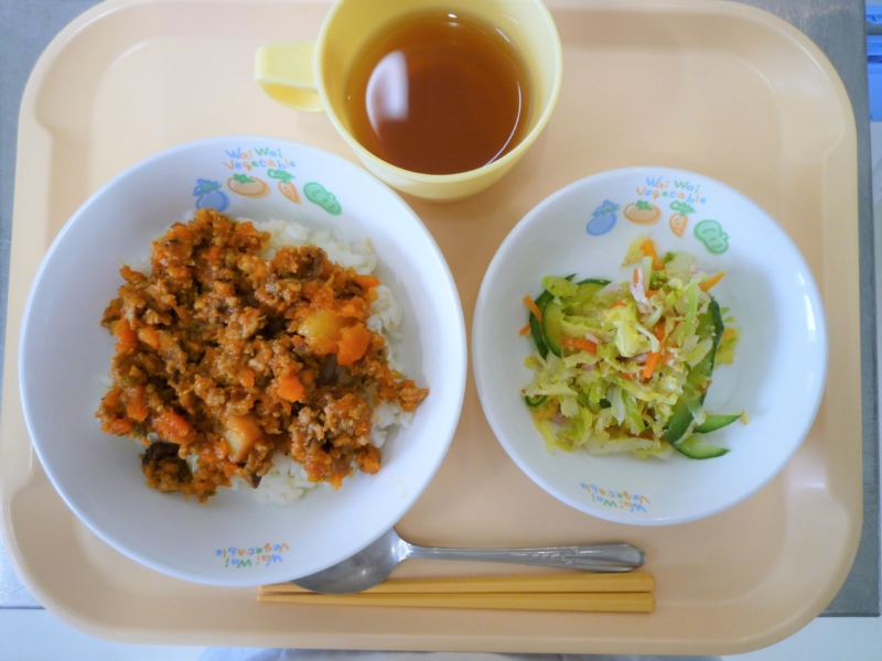 昼食:ご飯、ドライカレー、ごまサラダ、バナナ(乳児のみ)