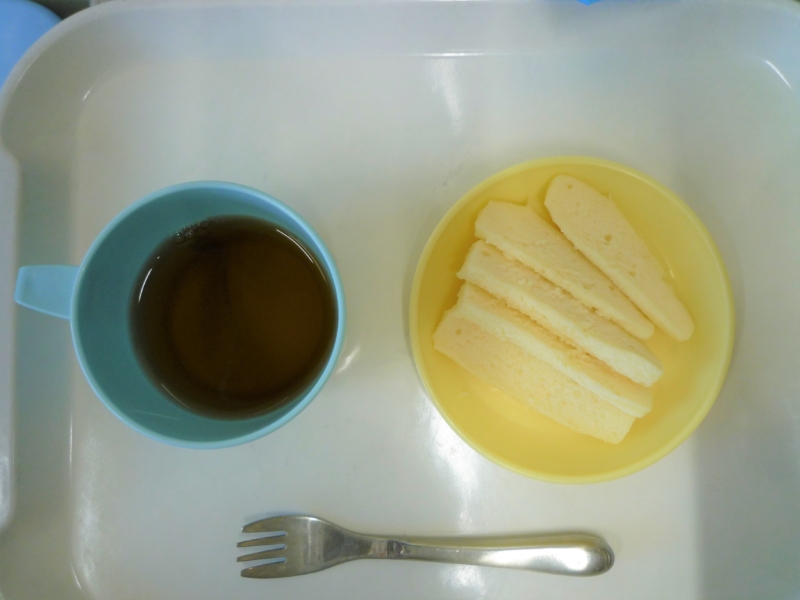 離乳食(後期)午後おやつ:麦茶、蒸しパン