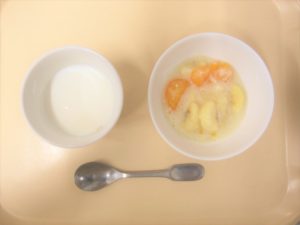 午後おやつ:フルーツクリーム和え、牛乳