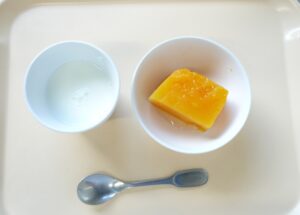 午後おやつ:みかんゼリー、牛乳