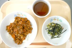 昼食:ごはん(幼児クラスのみアルファ米)、ドライカレー、ツナとキャベツのサラダ