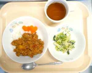 昼食:ごはん、ドライカレー、ちりめんサラダ