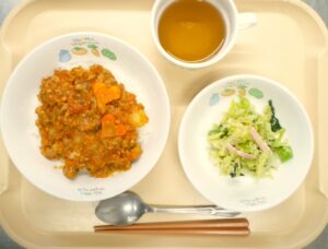 昼食:ごはん、ドライカレー、キャベツサラダ