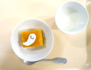離乳食(後期)午後おやつ:かぼちゃプリン、麦茶