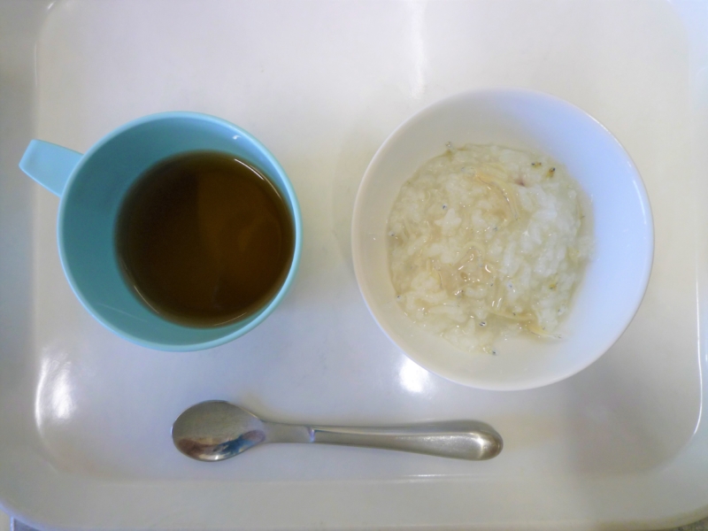 離乳食(後期)午後おやつ:しらす粥、麦茶