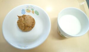 おやつ:バナナマフィン、牛乳