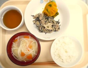 本日は、冬至メニューを提供しました。「ん」がつく栄養たっぷりの食材を入れ、寒くて風邪のひきやすいこの時期に力をつけて過ごせますように!
