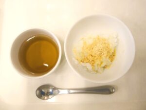 離乳食(後期)午後おやつ:きなこごはん(粥)、麦茶