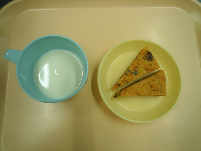 午後おやつ:牛乳、かぼちゃケーキ