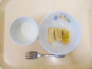 午後おやつ:かぼちゃもち、牛乳