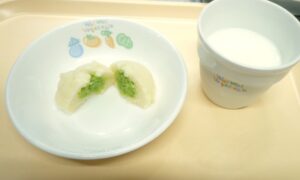 離乳食(後期)午後おやつ:米粉蒸しパン、牛乳
